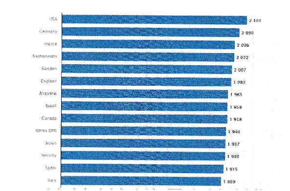 O desempenho da seleção feminina de futebol na última década é um dos motivos pelos quais a popularidade do esporte aumentou nos EUA. A seleção nacional de futebol feminino é atualmente considerada a melhor seleção de futebol feminino do mundo, confira o gráfico abaixo.